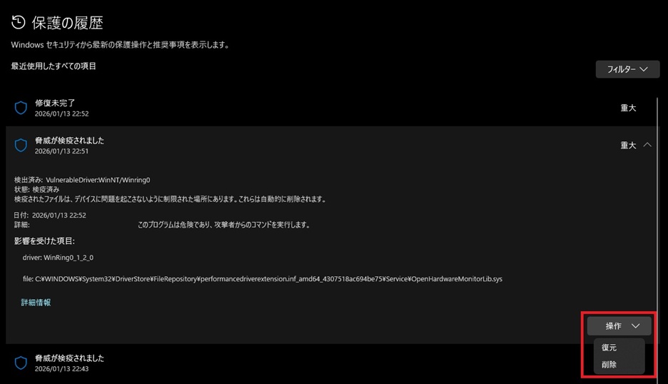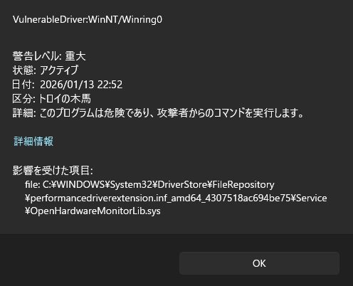 Windowsの「Microsoft Defender」が一部アプリの起動をブロックする可能性 「Winring0ドライバ」の脆弱性が原因(リスクを受容すれば回避策あり)