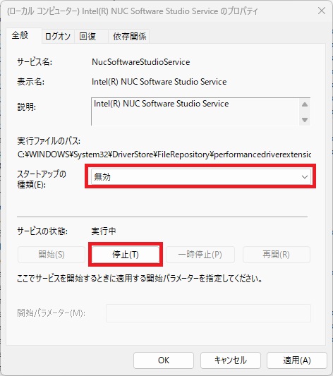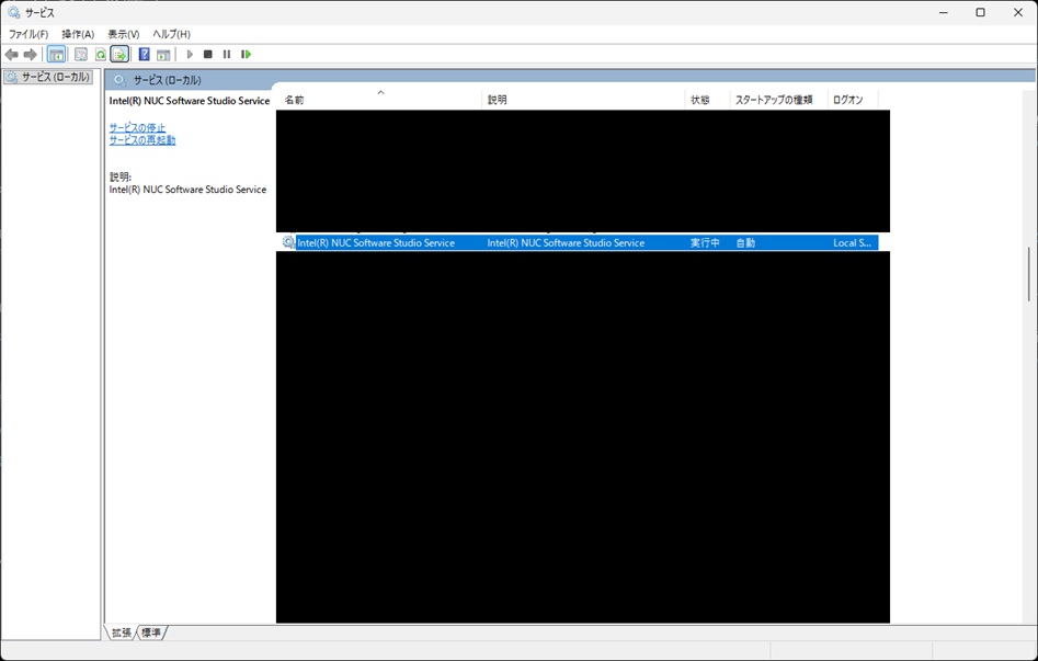 1.[サービス]から[Intel(R) NUC Software Studio Service]をダブルクリック
